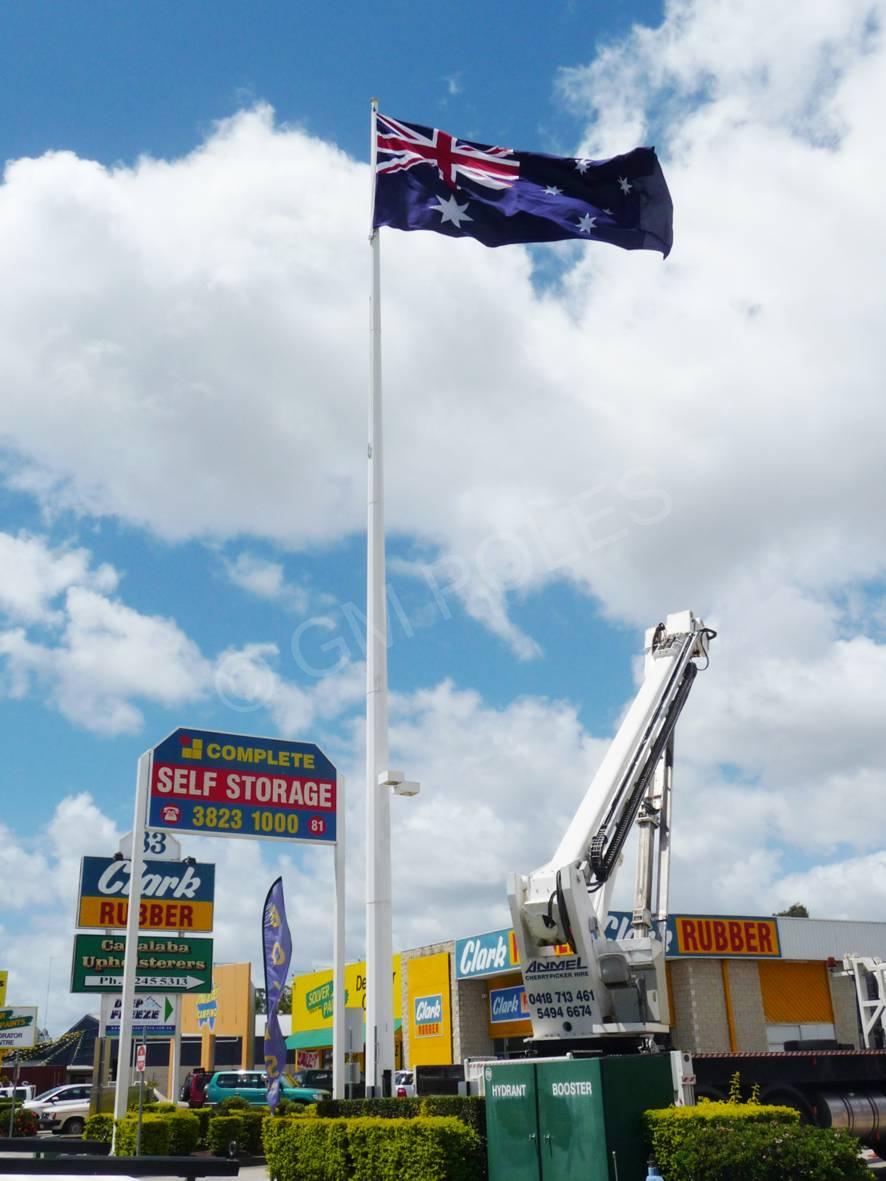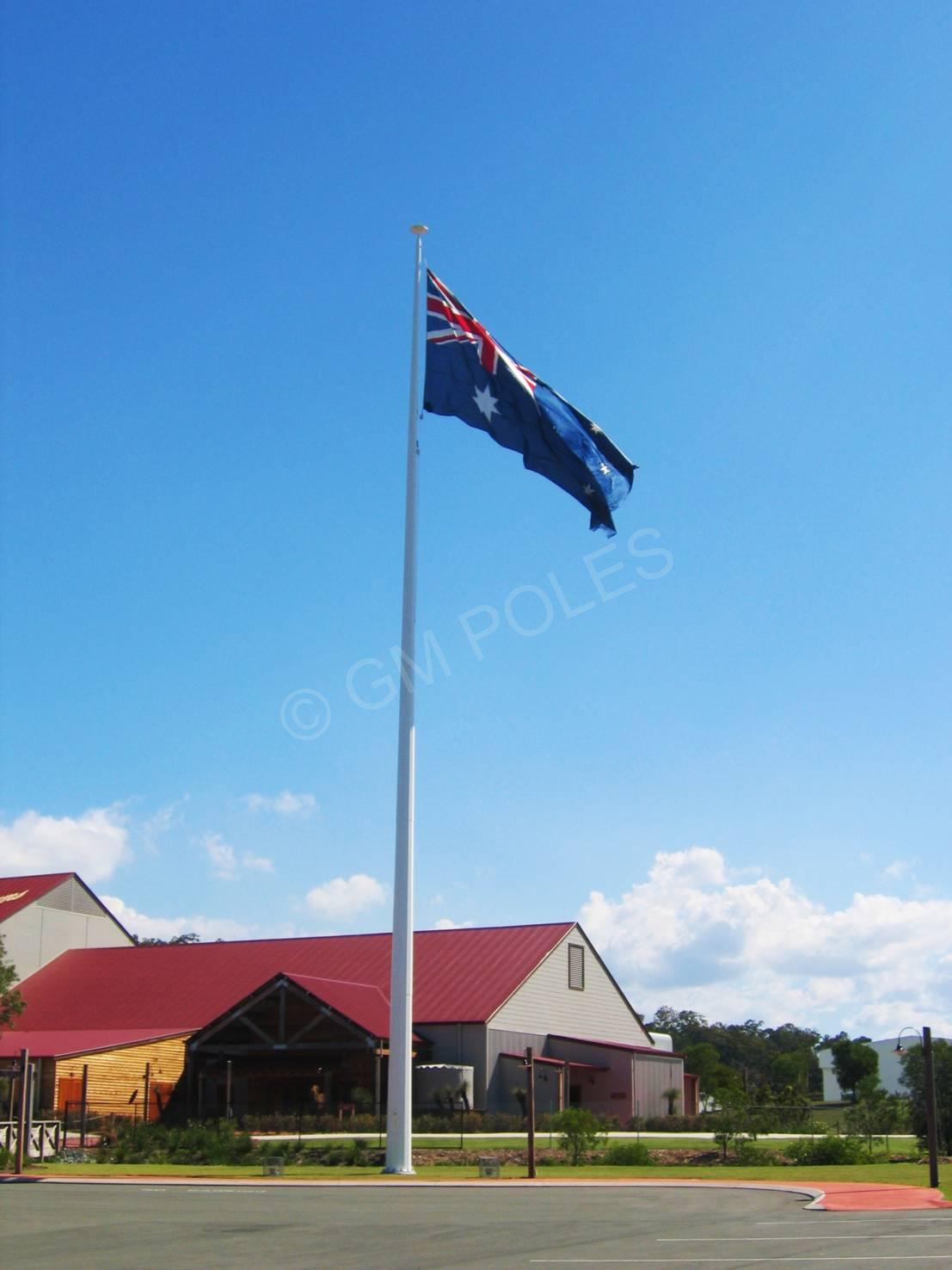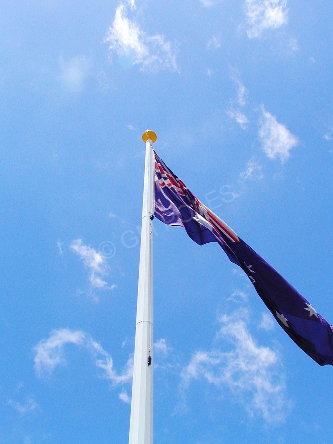 GM Poles supplies large steel flag poles complete with ropes and pulleys to enable easy operation. Poles are tapered steel and hot dip galvanized for durability. They can also be powder coated or painted in the colour you require. Pole heights are 18.0m – 30.0m and above depending on customer’s requirements. Every product supplied by GM Poles is designed and certified by an Australian Registered Engineer.