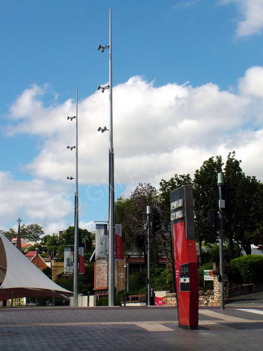 Mid-hinged lighting poles are a simple but effective solution for maintenance access, eliminating the need to use ladders or elevated work platforms for tasks such as changing light bulbs. These can be used in a variety of scenarios including mine sites, large carparks, airports and rail yards where poles are hard to access with a crane. Standard pole heights are 2.4m – 30.0m depending on customer’s requirements. Every product supplied by GM Poles is designed and certified by an Australian Registered Engineer.